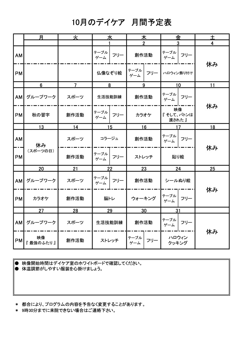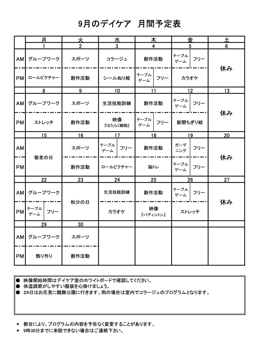 詳しい内容についてはデイケアスタッフが説明いたします。